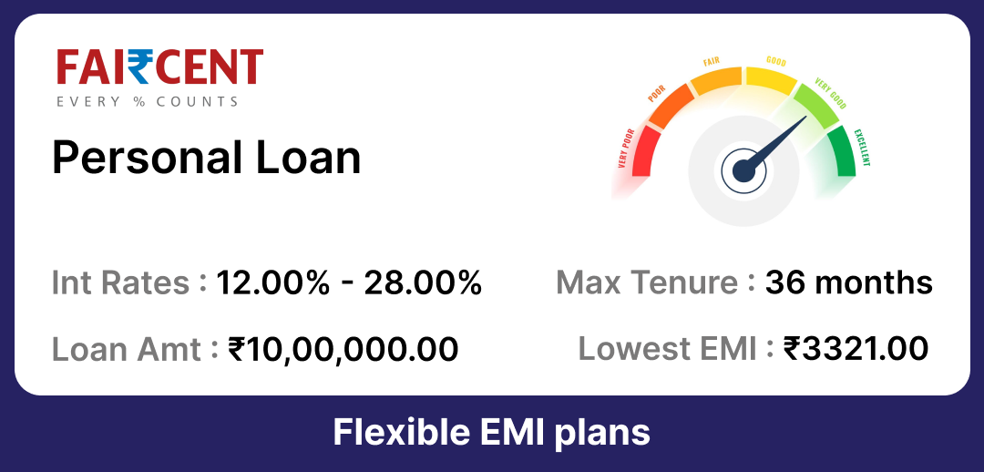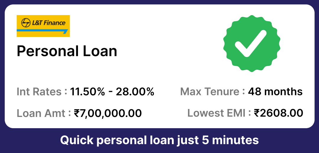 Disclaimer : Loan tenure ranging up to 72 months with Annual Interest Rates ranging between 11.5% - 36%. Processing fee up to 2%. For Example: Considering a personal loan of Rs.1,00,000 availed at 11.5% interest rate for a tenure of 6 years with 2% processing fee, the APR will be 12.26%. *T&C Apply. All these numbers are tentative/indicative, the final loan specifics may vary depending upon the customer profile and NBFCs' criteria, rules & regulations, and terms & conditions. Company Address: 1st Flr, Plot 29, Parvati Nagar CHS2, Katargam Road, Katargam, Surat, Gujarat - 395004